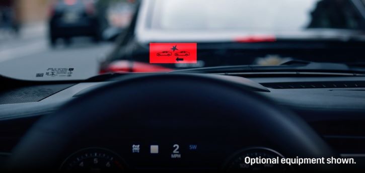 With a full-color reconfigurable display, the available Head-Up Display projects key selectable information onto the windshield.