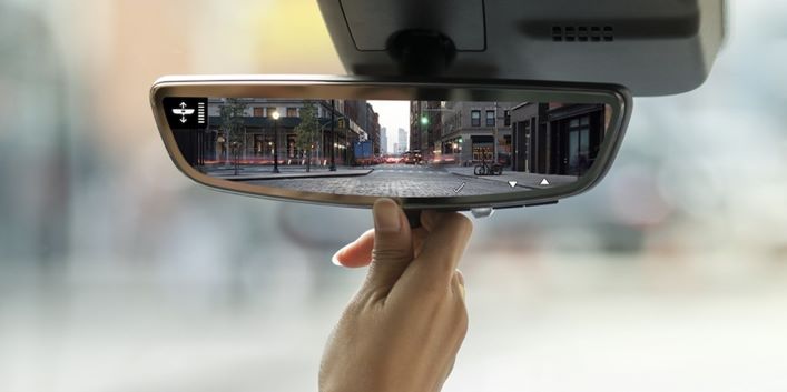 The available Rear Camera Mirror uses a camera to provide you a wide and less obstructed view behind the vehicle while you’re driving. You can switch between the camera view and a traditional rearview mirror.