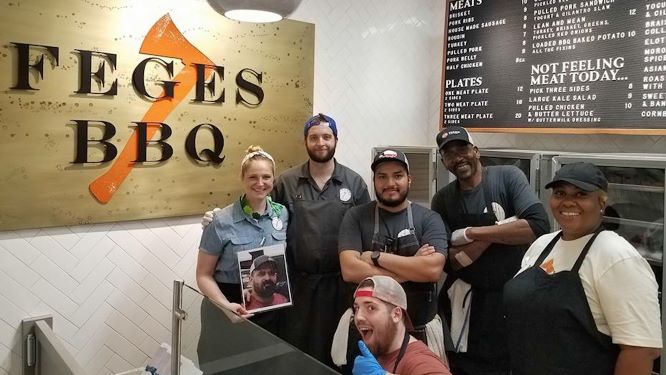 Army Veteran Patrick Feges caught the barbecue bug while recovering from injuries suffered serving in Iraq. In 2012, Feges purchased a large smoking rig and began catering events and executing pop-ups, cooking the nontraditional smoked cuts for which he’s now known—everything from pig wings (pork shank) to beef-belly burnt ends. Patrick and his wife Erin Smith opened Feges BBQ in March 2018. With their combined fine dining experience and Patrick's barbecue expertise, Feges BBQ offers a new approach to barbecue combining traditional flavors and modern interpretations of classics.